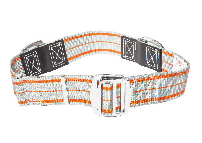 ·消防安全腰帶是一種緊扣于腰部的帶有必要金屬零件的織帶,用于承受人體重量以保護(hù)其安全,適用于消防員登梯作蚜口逃生自救。消防安全腰帶帶長(zhǎng)連續(xù)可調(diào),由織帶、內(nèi)帶扣、外帶扣、環(huán)扣和兩個(gè)拉環(huán)等零部件構(gòu)成。消防安全腰帶的設(shè)計(jì)負(fù)荷為1.33N,其質(zhì)量不超過o.85kg??棊橐徽?,無接縫,其寬度為{70±1)mm。具有靜負(fù)荷性能、抗沖擊性能、耐高溫性能以及金屬零件的耐腐蝕性能。